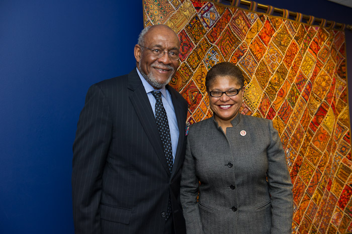 We normally don’t go by protocol, but I think it’s appropriate today, if you would agree with me, Johnnie, that we give Congresswoman Bass maybe the first right of a question or a comment. You will be allowed a comment; no one else will. (Laughter.) I’m going to be far stricter, far stricter than I normally am in this room in making sure that we hold to short questions and keep it at a question.